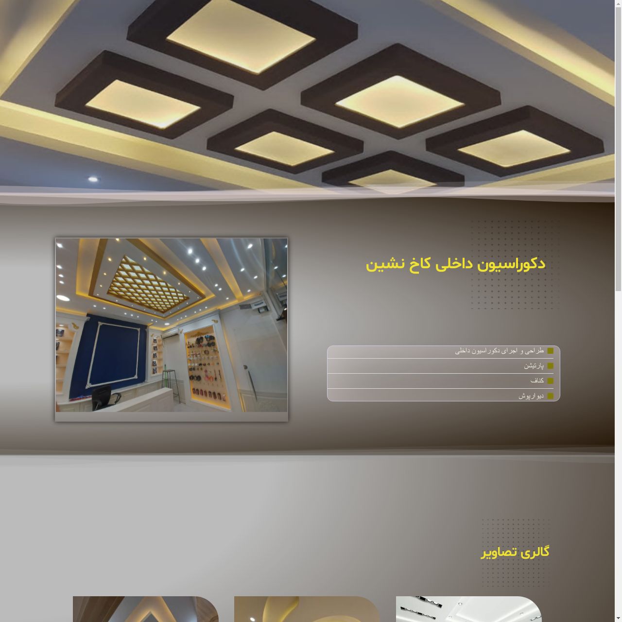 دکوراسیون داخلی کاخ نشین طراحی و اجرای دکوراسیون داخلی پارتیشن کناف دیوارپوش گالری تصاویر قبلی بعدی برای مشاوره و سفارش تماس بگیرید آدرس ما لرستان بروجرد Instagram Whatsapp Mobile Sms تمامی حقوق برای دکوراسیون داخلی کاخ نشین بروجرد محفوظ است | طراحی و توسعه توسط سینو